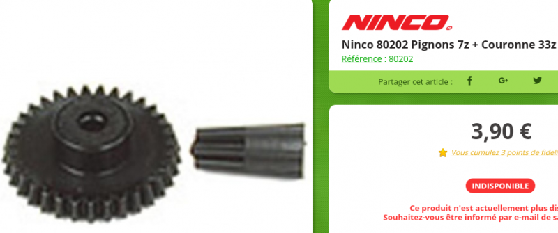Il est de plus en plus compliqué de trouver les transmission des karts Ninco.