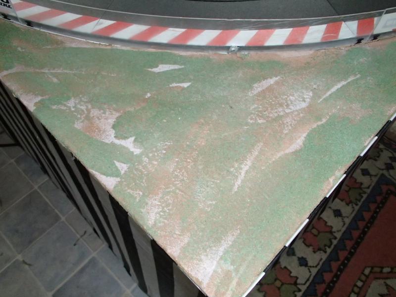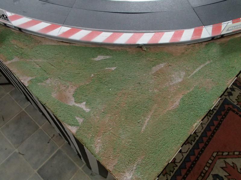 Les jardiniers ont essayés de faire pousser de l'herbe. Il s'agit de sciure de bois peinte en vert. Pour faire tenir le tout, colle à bois diluer, mais je me demande si je ne vais pas essayer la prochaine fois de la colle en bombe. Puis pour bien faire tenir le tout du vernis mat de chez Tamiya.