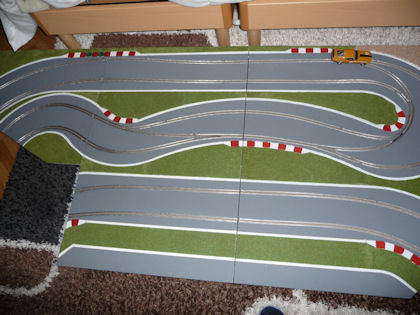 Une petite question concernant les tresses de Slotfire. Ces tresses sont évidemment plus épaisses que le cuivre. Il me semble avoir lu un jour qu'il fallait rainuner de chaque côté du slot. Cela a-t-il été fait sur ton circuit, et si oui, quelle profondeur, car il faut que la tresse dépasse légèrement du plateau; de combien doit-elle dépasser? 1/10mm, ou plus ou moins?