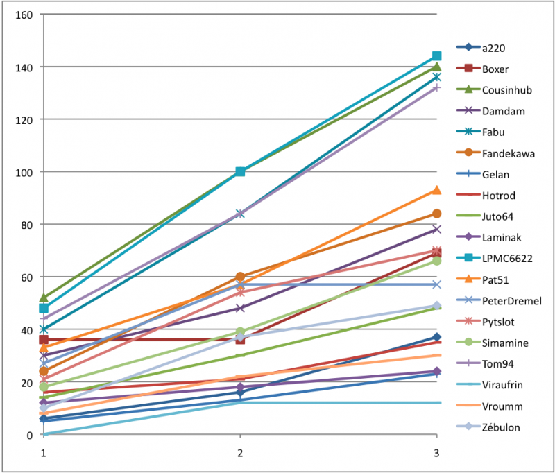 Graphique montrant l'évolution des positions à l'issue de la 3ème étape: