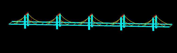 Sergio a écrit :En principe, les ponts suspendus sont utilisés pour de grandes portées. une portée de 5 m => 160 m deux portées de 2,5 m => 80m trois portées de 1,7m => 65 m Au-delà de 3 portées, le résultat ne sera guère réaliste. Le problème avec des portées aussi grandes est de maintenir les rails à l'horizontale. Je vois 3 solutions possibles :Ouf! 40 cm de large !pour garder des proportions raisonnables sur 5m ... combien de module ? 5 de 1M ? ou moins ? (8 de 625mm de longueur ) ?