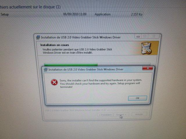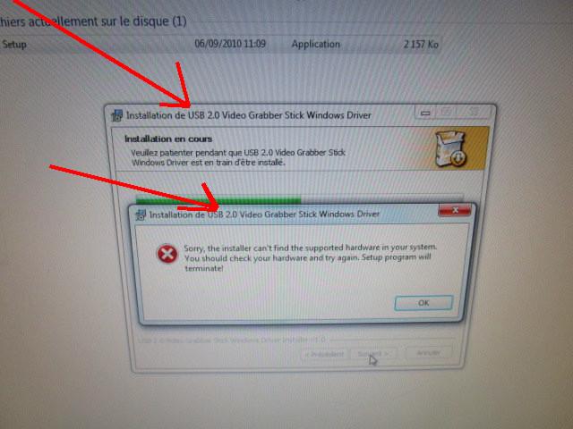 alors, le premier dossier n'est pas le bon, en effet, le premier dossier installe des drivers pour : USB 2.0 video grabber etc etc ... c'est pas ça, je le sais car un video grabber, j'en ai un, c'est un raccord USB <--> COMPOSITE ça te le dit là (flèche rouge )
