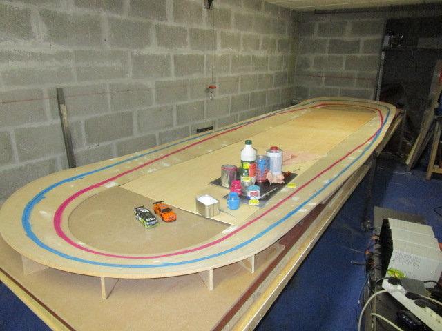 bon ,voila ou j en suis ce soir.le circuit est vissé collé....ça ne bougera pas....pour la peinture , c est de la poluretane automobile ,en 2 couches et ensuite très leger ponçage dans le slot afin d eliminé les "ptits poils" du bois lors du fraisage malgré un préponçage avant.ensuite je vais y mettre une couche de vernis poluretane avec son durcisseur et ça ira bien comme ça ,ça va gisser , jvous dis....