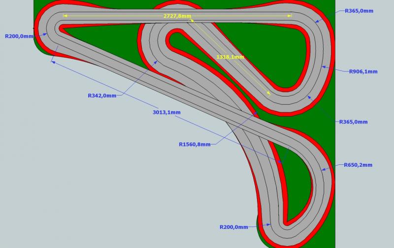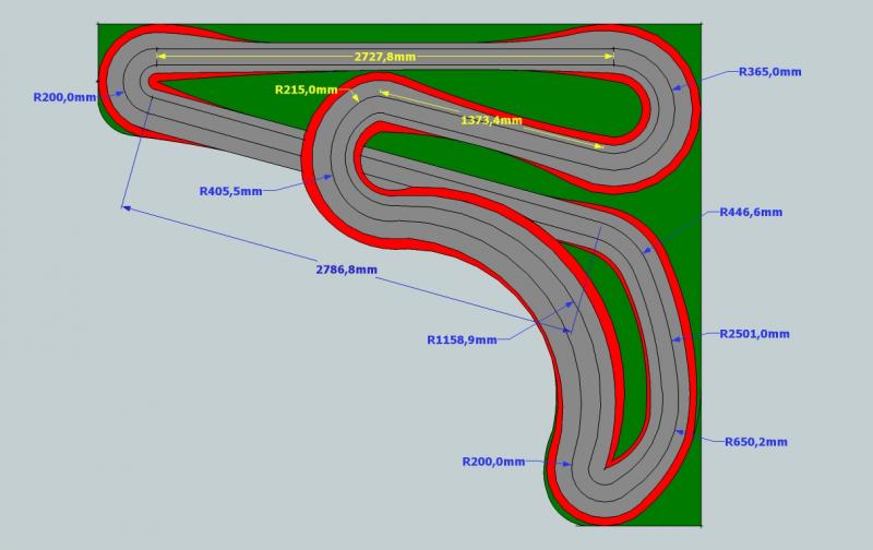 Les 6 cm je les mesures entre le slot exterieur et le trait rouge de bordure de circuit. Mais ce trait rouge n'est pas une ligne de coupe du medium. C'est surtout pour materialiser les lignes blanges, vibreurs, etc...