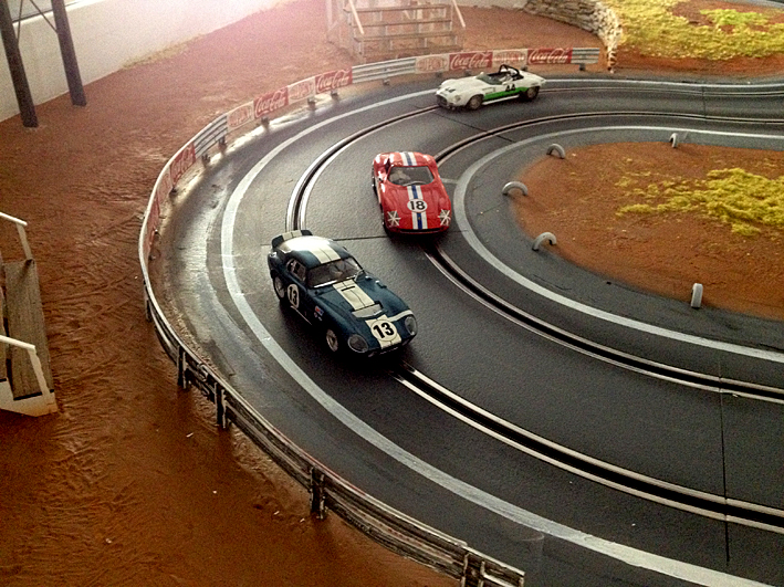 Super ton début de deco: America sixties/ début seventies - j 'ai bondi en apercevant sur la photo , dis moi la 3eme voiture c' est bien une jaguar type e v12 du team GROUP 44 ..!!!!!! super ! Ça vient d'ou ? La marque ?