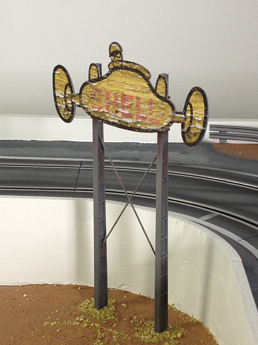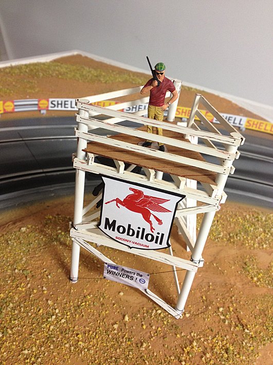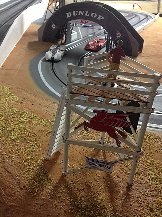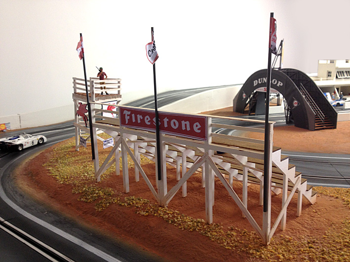 la piste est une Carrera qui a été mise à niveau et intégrée au sol. les éléments de décor sont des MF Motorsport, à part les stands qui ont été créés par Demether.