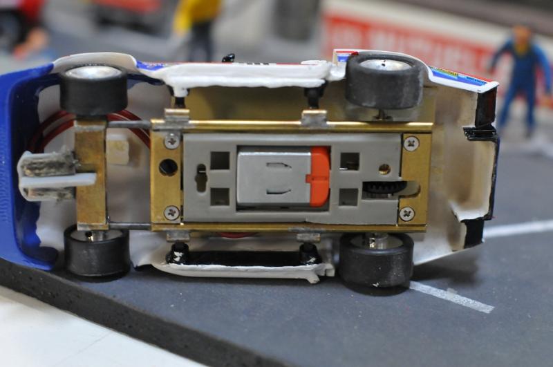 Si je ne m'abuse, le châssis fait partie de ceux réalisés par Docteur Scalextric, alias Riton... personnage haut en couleur qui faisait partie du club de slot du Squash Montmartre à Paris, aujourd'hui disparu je parle du club, hein !)