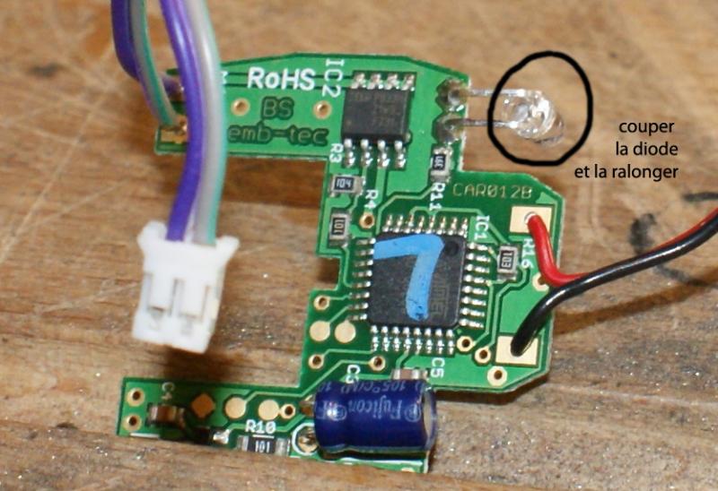 igunes a écrit :bonjour a tous , petite modif pour monter des puces carrera dans la plus par des voitures avec la puce pour les "karts carrera" car la diode et décaler , il faut couper la diode et la rallonger et mettre la puce ou il y a de la place ex...sur le moteur ou dans l'habitacle