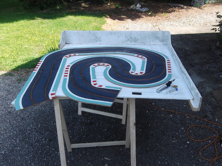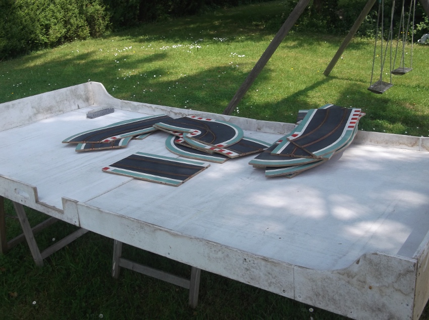 je suis monte au grenier pour prendre ma piste scalex qui traine dans les cartons..............et la !!! illumination !!!!!! je sais que dans une caisse il y a truc qui va etre encore mieux que le plastique pour cette piste demontable............