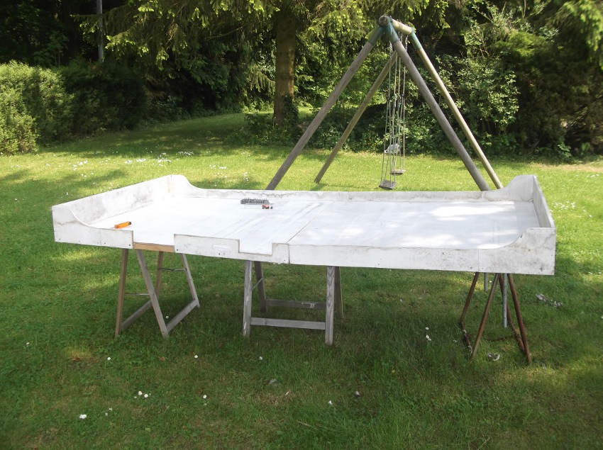 donc j ai trouve 3 vieux treteaux et mon plateau....