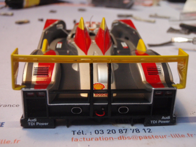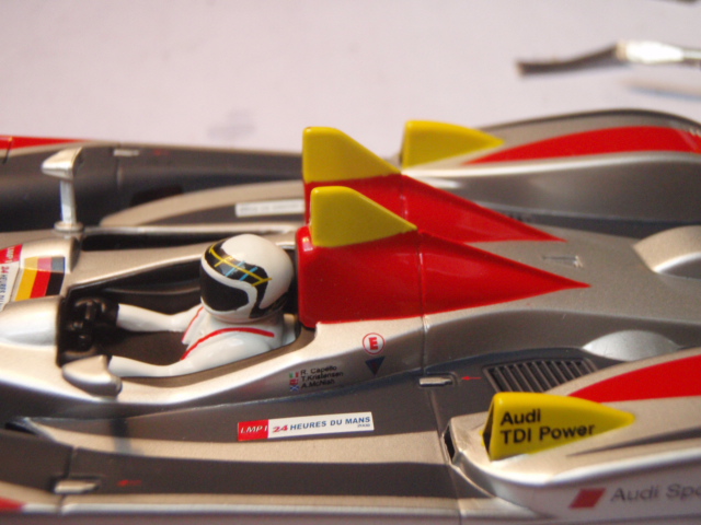 L'Audi, la tampographie et les couleurs sont correctes, même si je ne connais pas trop les formes de la voiture à l'échelle 1. Seule petit souci, la bosse à l'arrière pour faire passer la couronne.