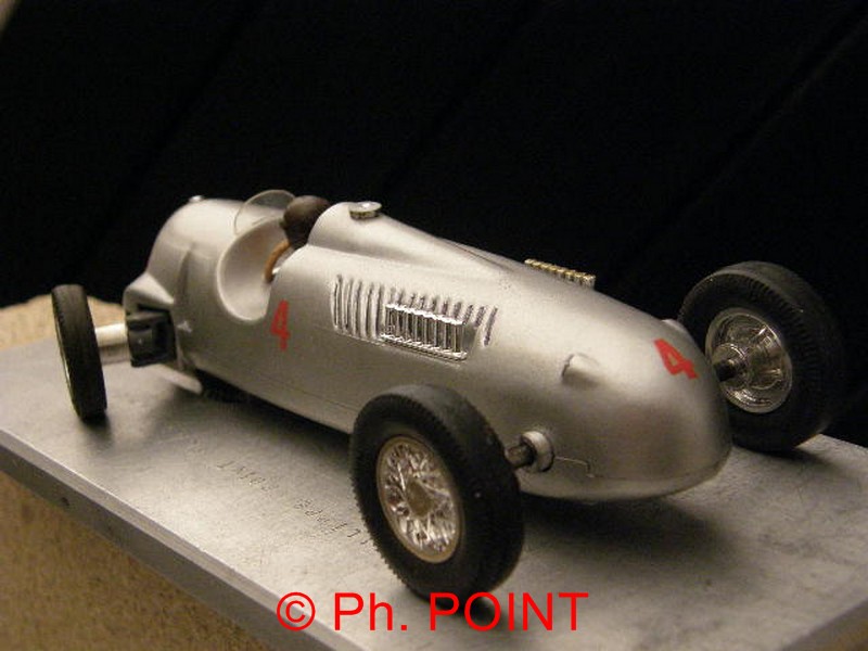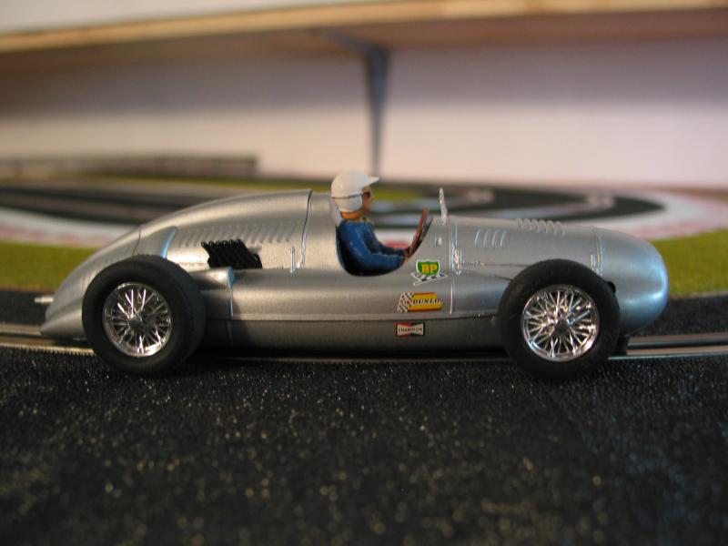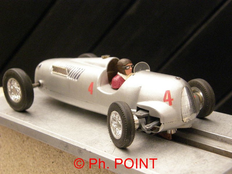 je vous présente un de mes premiers scratch, une auto union de la marque Airfix au 1/32, une petite formule 1 plutôt sympa motorisé avec un NC1; bien avant que la marque Cartrix ne sorte toute sa gamme.