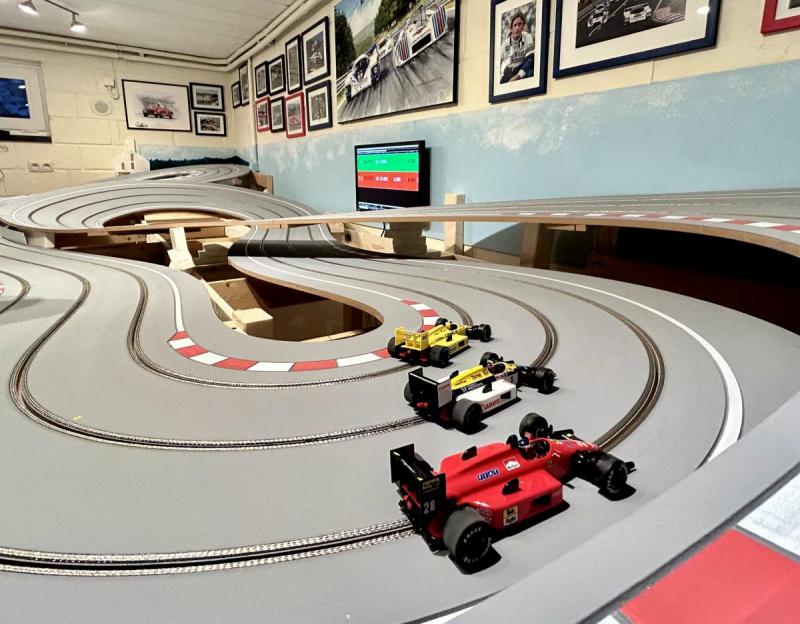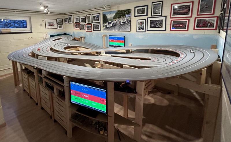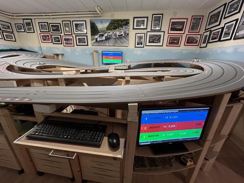 C'était vraiment mon objectif: une piste avec la qualité de roulement du bois, qui permet de rouler davantage, avec plus de personnes autour, tout en se prêtant à une belle occasion de faire de la déco (mais moins que pour le précédent).PtitGab a écrit :Tu ne regrettes pas la vente de tes 2 Porsche 917 NSR ??? En tout cas chez moi elles sont aussi sur du bois 3 voies et tournent à la perfection !
