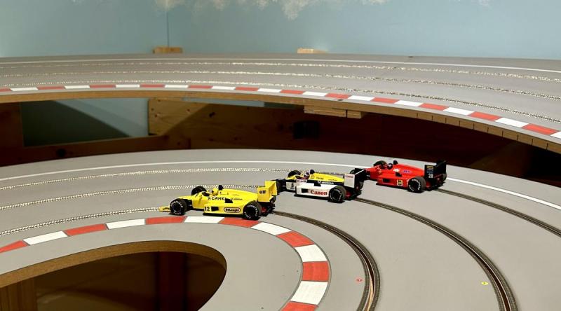 Oui, vraiment, 3 voies c'est top! Cela fait une grosse différence en possibilités de roulage à plusieurs. Mon objectif avec cette piste est de pouvoir permettre à mes P'tits Pilotes (qui deviennent grands