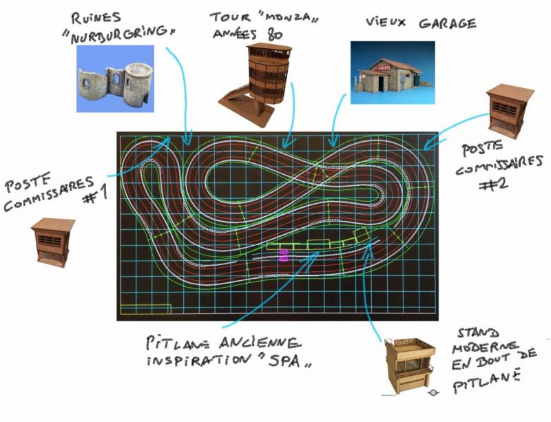 Je réutiliserai une partie des bâtiments que j'avais prévu de réaliser et de placer sur l'ancien circuit, à savoir
