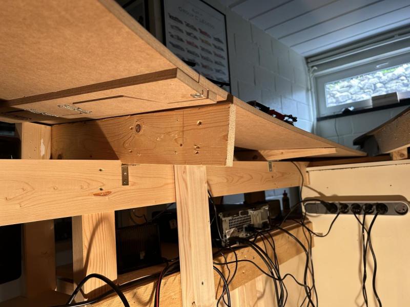 - je laisse un accès à tous les câbles et à toutes les jonctions de sections de piste (pour aller éventuellement retravailler le contact entre tresses, par exemple).