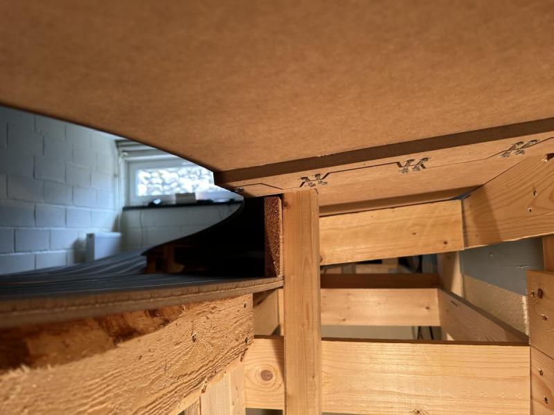 - je veille à ce que plus aucune partie de piste ne soit soutenue que partiellement et en équilibre précaire (si j'appuie sur un endroit et qu'il bouge, c'est qu'il n'est pas bien soutenu)