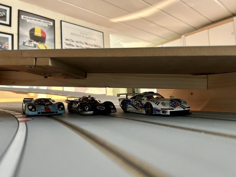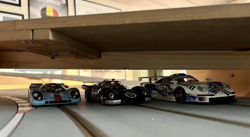 Tu ne regrettes pas la vente de tes 2 Porsche 917 NSR ??? En tout cas chez moi elles sont aussi sur du bois 3 voies et tournent à la perfection ! Mon fils adore la gulf pour rouler et veut un éclairage dedans...