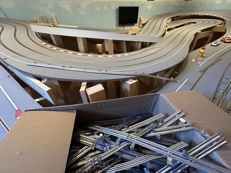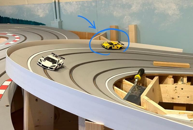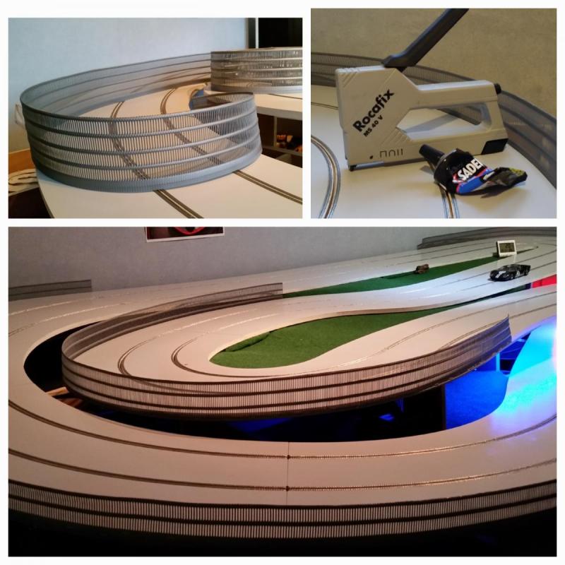 Après avoir placé quelques petites cales pour mieux soutenir la piste là où c'est pertinent ou nécessaire, je m'attaque donc aux barrières.