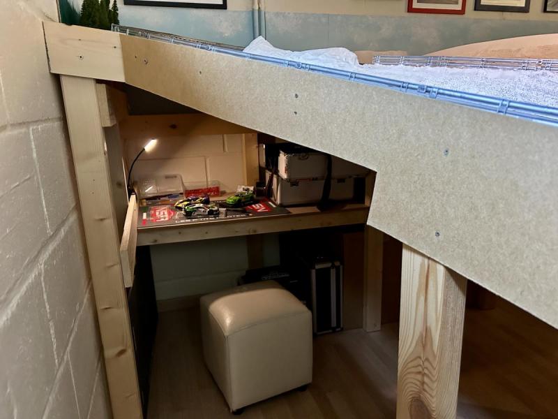 Comme vous le savez, je ne ferais sans doute pas du slot de la même manière sans mes enfants et les P'tits Pilotes. C'est pourquoi dès la conception du circuit j'ai décidé de réaliser des aménagements sous le plateau.