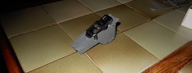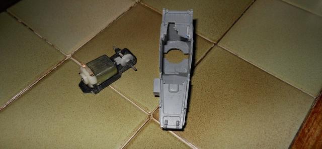 Il a fallu un travail d' orfèvrerie pour faire passer le bloc moteur dans la caisse, j' ai même été obligé de tailler dans les flancs pour faire passer les griffes tenant le moteur ( tout ceci sera camouflé lors de la finition)