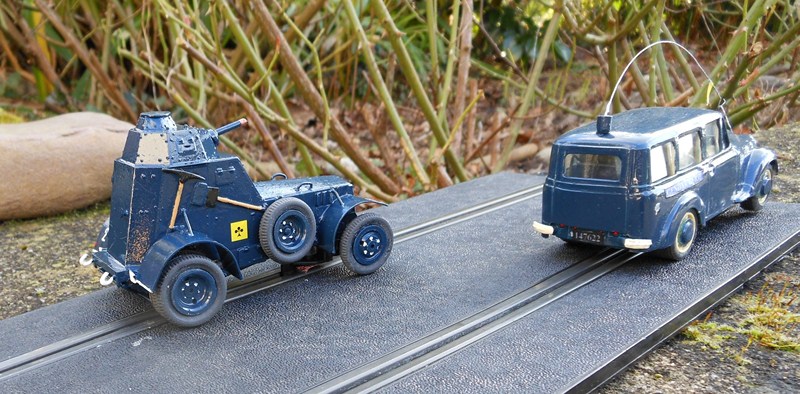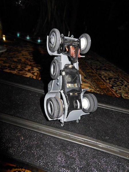 J' ai refait les petits accessoires fragiles en fil d' acier et fil de fer, les pièces d' origine auraient été trop fragiles pour une voiture de slot...
