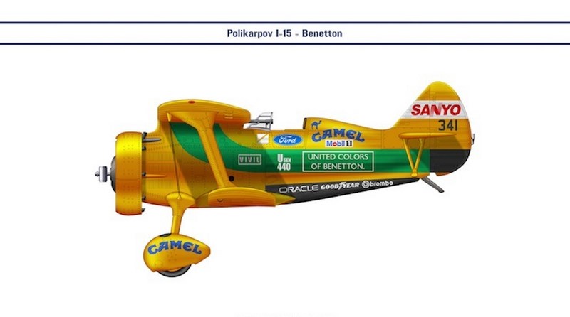 Amusant le transfert des sponsors sur les avions, sans doute inspiré par les courses de pylônes de Reno...