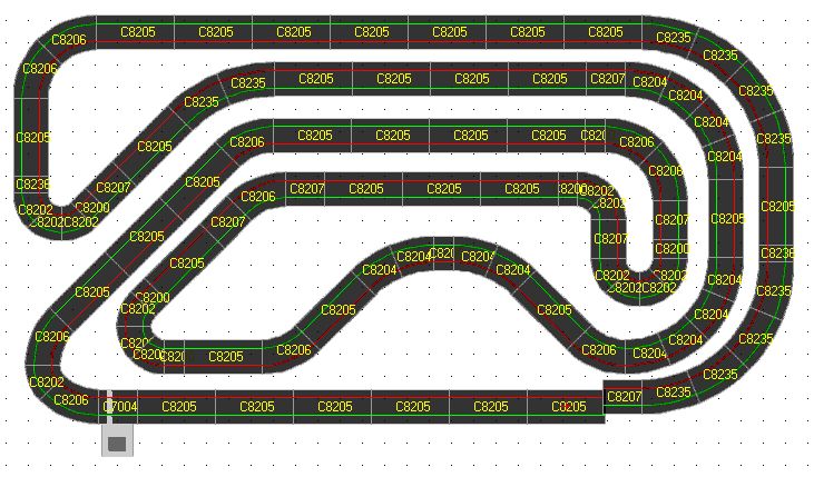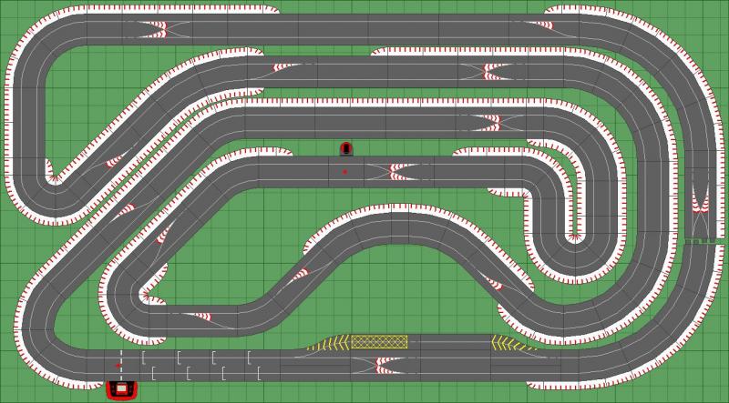C'est une trés bonne exploitation de l'espace, il y'a une belle ligne droite et une belle parbolique à droite , mais je ne trouve pas le tracé intéressant, trop de R1 à mon gout, et surtout un circuit trop "en va et viens" (la voiture va droite, puis à gauche, puis à droite, etc......) bref c'est pas fluide, pas assez de place pour la déco ni pour les bordures je pense.
