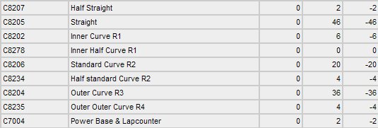 je vais avoir 5 changements de voie ligne droite et un courbe 3 accés pit lane, ainsi que la pit-stop à refourguer...