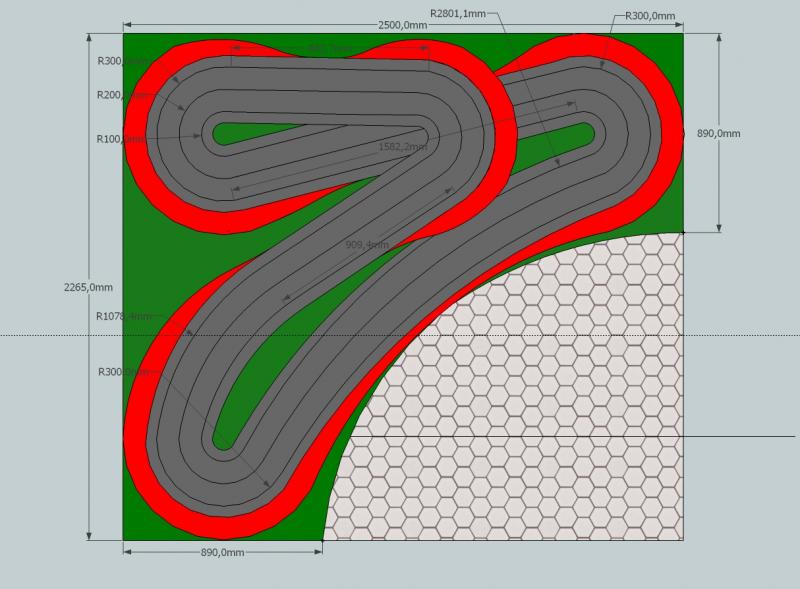 J'aimerais un circuit fluide, pas forcément pour faire de la vitesse (de toute façon vue la place dispo...) et je verrais bien une grande courbe le long de l'arrondie du plateau (plutôt qu'une ligne droite)