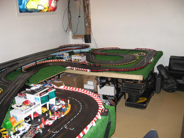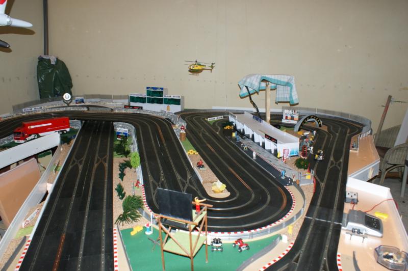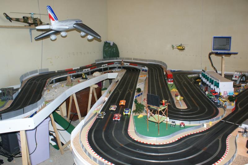 Niveau piste, je veux créer une piste avec du relief et sur deux niveaux afin de profiter d'un maximum de place et de sensation. Je dipose d'une place de 5m par 1,5m our d'une palce de 6,5m par 2,5m. La piste sera contre 3 murs, je ne me soucie pas beaucoup du ramassage de voitures, puisqu'il n'y aura pas de compétition "pro", c'est juste pour moi et quelques amis en soirée donc esprit "COOL", un se plante, les autres attendent ... L'esprit déco serait soit style Monte Carlo/Targe Florio ou alors plus US style Laguna Seca (plus facile niveau déco je pense)