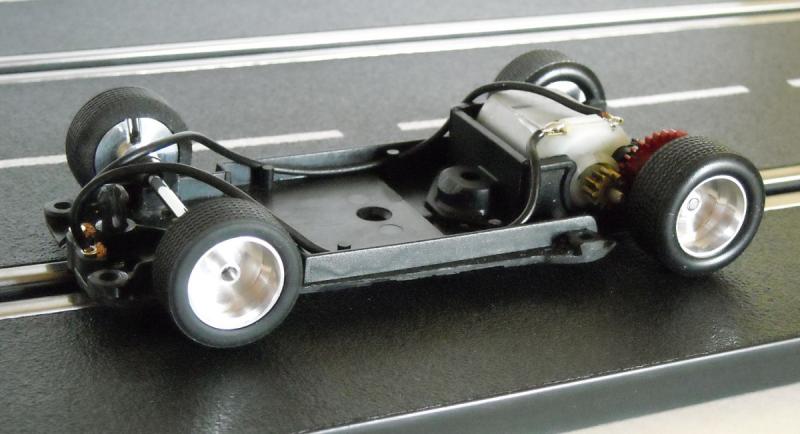 Pour les jantes, ce sont tout simplement des Slot.it en alu dans lesquelles je suis venu coller les inserts de jantes du kit GMC, après les avoir retravaillés en épaisseur (pour la profondeur avant ou arrière) et peints.
