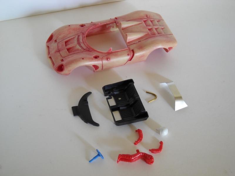 J'ai opté pour un FLY (Lola T70) à moteur side-winder qui me permet de remplacer le plancher/habitacle plat, fournit avec le kit GMC (dont je n'ai récupéré que le tableau de bord), par un habitacle entier, en l'occurence, un NSR (Ford MkIV).