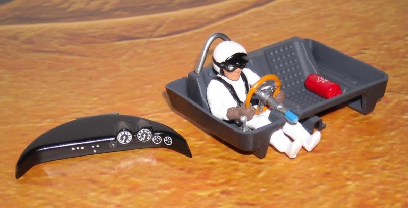 Le nouvel habitacle finit, avec le petit arceau de sécurité fait dans une tige de laiton puis peint, le tableau de bord fait à partir de l'original en résine, et un extincteur Fly en prime :