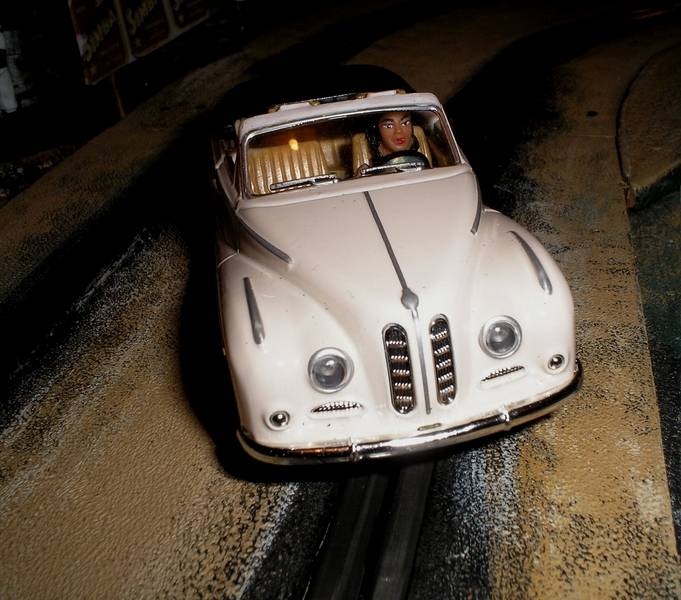 la conduite est beaucoup plus "souple" !!!! on as jamais vue une voiture "bondir" comme une voiture de slot a l'acceleration ! et au freinage, c'est pareil !