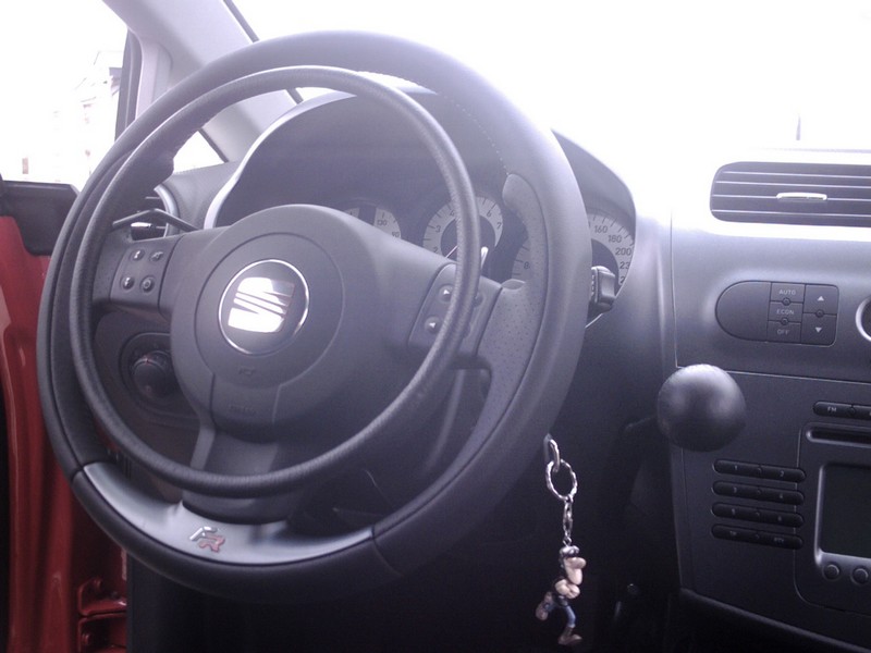 Après 14 ans en Safrane 2.5dt, je me suis offert une Seat Leon FR 2.0 TFSI 200cv, équipée de la boite DSG6 et des palettes au volant, aménagée chez Kempf d'un anneau accélerateur sur le volant et d'un levier de frein à droite du poste de conduite.