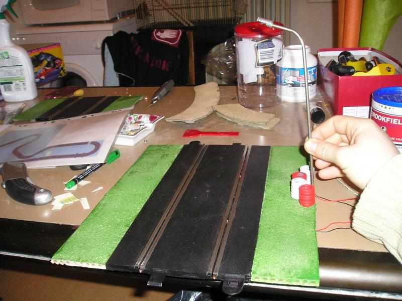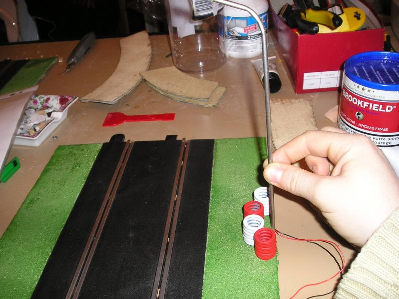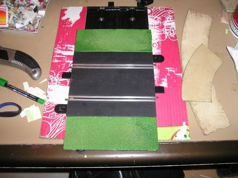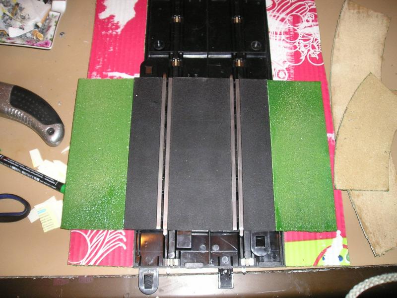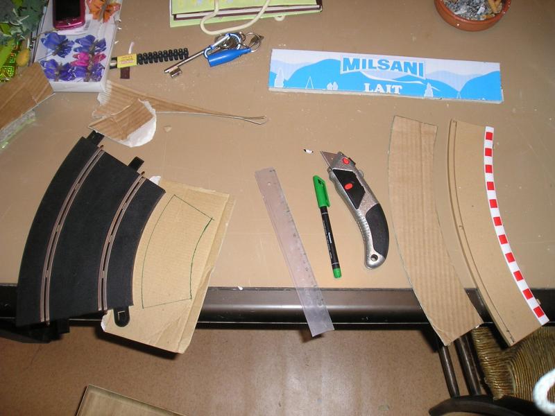 si vos cartons ne sont pas parfaitement de la bonne taille, préférés moins épais que trop car si les cartons sont trop épais, la voie va s'affaisser ce qui aura pour effet de bloquer vos autos entre les rails (elles seront déformés)