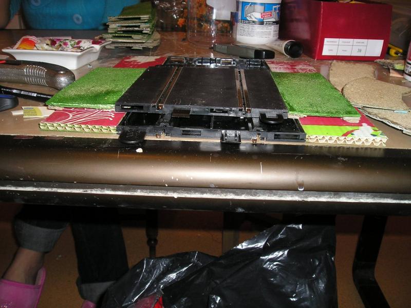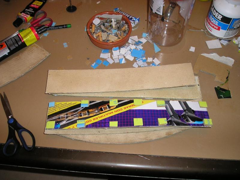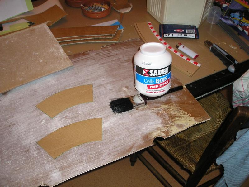 puis collage de cales (toujour en carton!) pour arriver a la même épaisseur que les rails utilisé (prévoyez des cartons de différentes épaisseur)