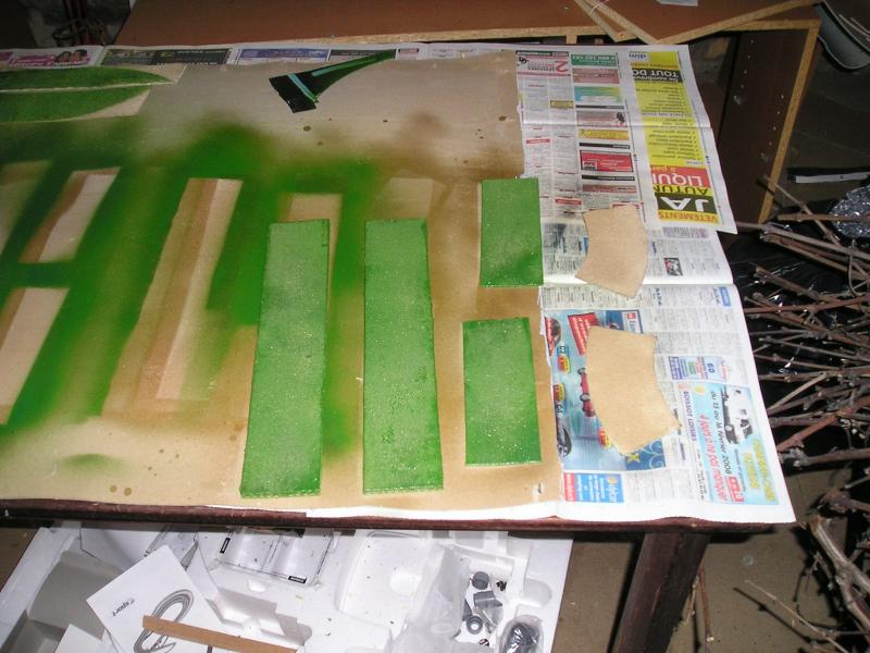 pour plus de réalisme, je peins certaines de mes bordures en vert pour imiter l'herbe