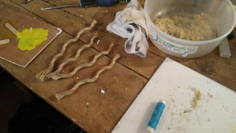 et recouverte de mini morceau de ficelle et ou de flocage vert