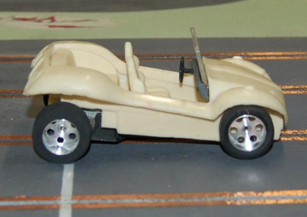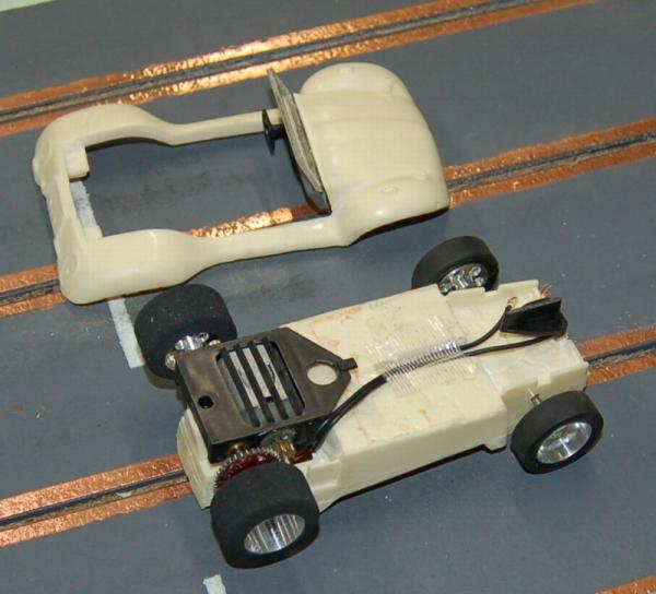 le travail (2-3 heures) consite a reproduire la caisse et la baignoire (les sieges et la banquette) ensuite ce n'est que de la finition (adapter un chassis moteur FLY ) des jantes NSR et un guide NINCO