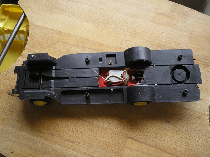 Maquette ARII au 1/32 motorisée avec un chassis scalextric récupéré sur une vieille Porsche.[/centrer[/centrer[/centrer[/centrer]]]]Scratch motorisé avec un vieux chassis de Porsche scalextric adapté à la maquette.