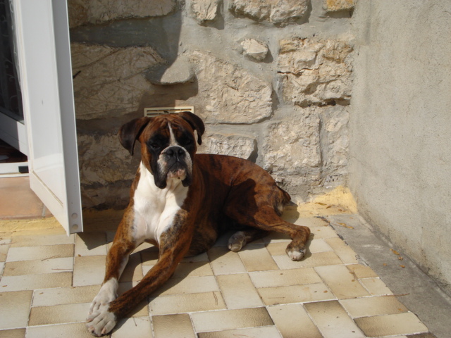 D'ailleurs on a mis un panneau "Attention au chien" pour pas qu'on marche dessus