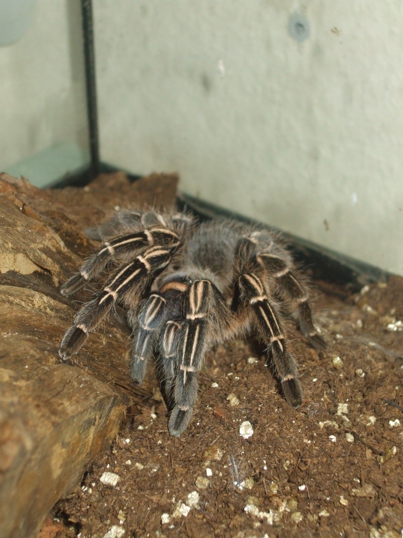 donc oui j'ai bien 4 mygales a la maison .... ou tarentules appele ca comme vous voulez ^^ ... dont 1 especes qui fait partie des 3 plus grandes mygales au monde un peu plus grand que le diametre d'un cd ... et une petite araigner de Malaisie une chasseuse il appele ca ^^