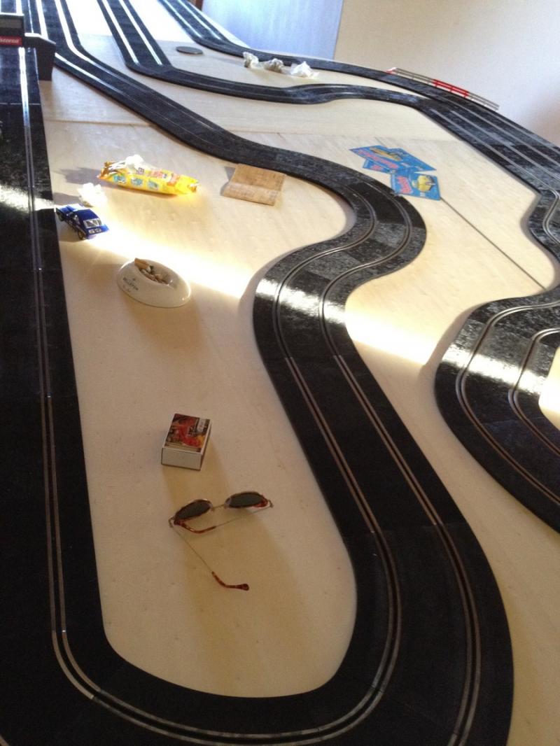 - C'est pas trop galère le ramassage avec tous ces virages ? ce n'est que mon avis, mais j'aurais aéré le tracé, quitte a avoir moins de virages et peut-etre aussi moins de développé. Parce que quand tu retireras les aimants, au début, tu risque d'avoir du mal à boucler un tour rapidement sans sortir, non ? (je ne mets pas en doute tes compétences de pilote, loin de là