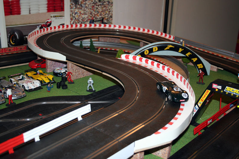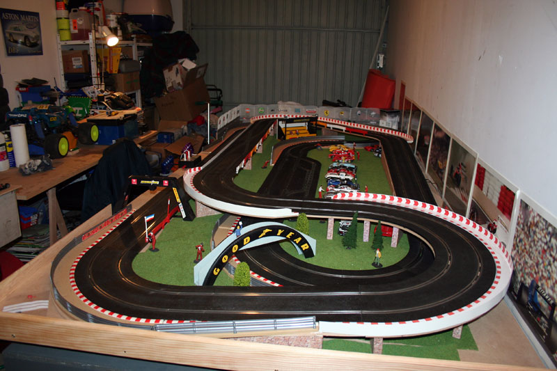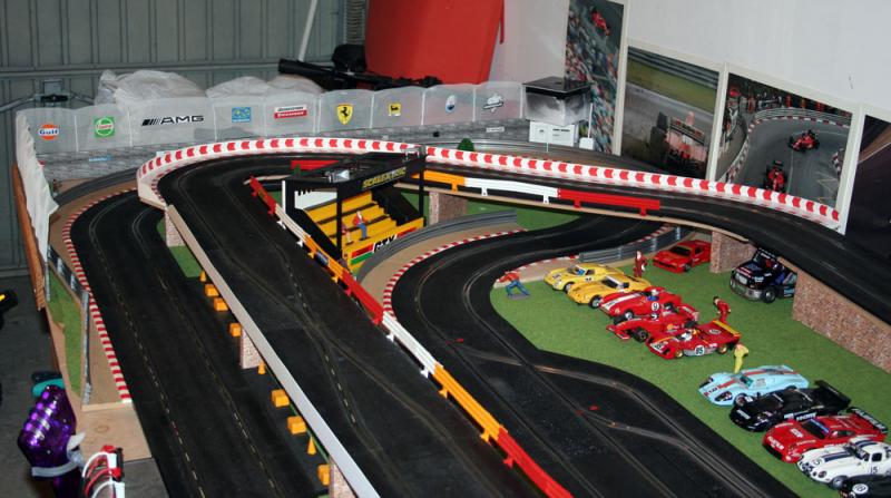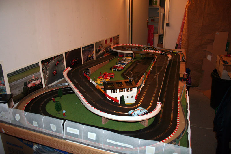 Bon et bien ça avance doucement mais surement: support de pont et bordures finis, piste fixée et pontée avec 2 alims séparées et petite soirée hier soir avec 2 amis pour de bonnes arsouilles, excellent, même si la F40 slot it n'a pas survécu