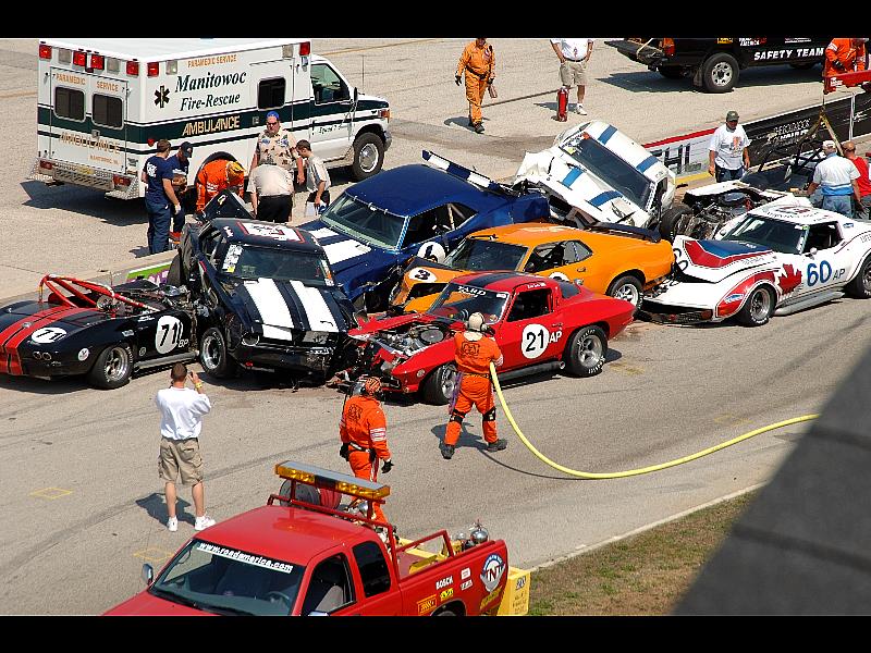 C'est pas un tournage de film ?? Les voitures sont toutes entassées dans le même coin. Un coup de volant à gauche et ca passe. Et surtout il n'y a pas de trace de freinage...