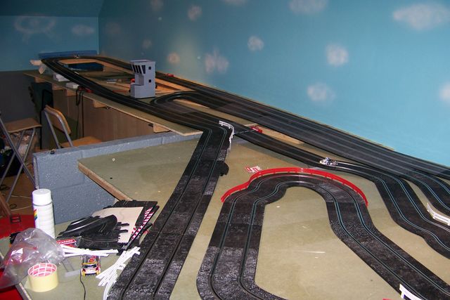 Mention spéciale aux nuages. Dis, t'es sûr que c'est du slot car que tu construis hein ? C'est pas des avions de chasse, au moins ? ![]()