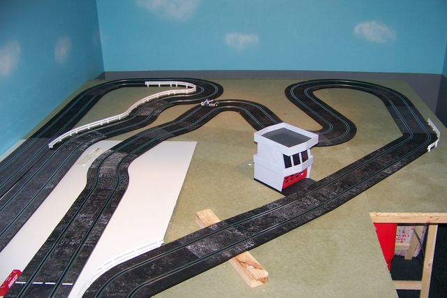 Oui je vais mettre du relief sur le piste avec moquette gazon. Je vais surelever la ligne droite contre le mur et certaines partie de mon tracé sur le plateau de forme carré. Du boulot en perspective mais j'espere que ca sera sympa.