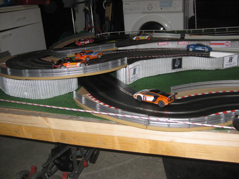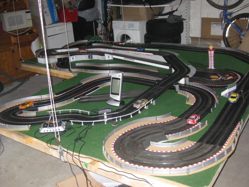 je vous présente la piste installée sur le plateau escamotable dans le garage .